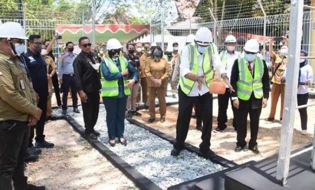 SINTANG – Bupati Sintang dr. H. Jarot Winarno, M. Med. PH meresmikam Menara Induk Poin of Integration Base Transceiver Station (PoI BTS) Universal Service Obligation (USO) Badan Aksesibilitas Telekomunikasi dan Informasi (BAKTI) Kementerian Komunikasi dan Informatika Republik Indonesia di Kompleks Gedung Serbaguna pada Senin, 28 Maret 2022.